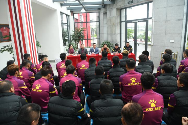 10月20日上午,成都兴城集团党委书记、董事长任志能,中国足协执委、成都市足协主席辜建明,集团党委委员、副总经理、俱乐部党支部书记、董事长、总经理李鸣琴,集团办公室主任、团委书记、俱乐部董事王茂翔,来到都江堰训练基地召开2020中甲联赛第二阶段出征动员会,俱乐部全体参赛运动员、教练员及管理人员参加本次动员会。