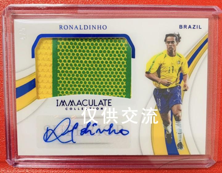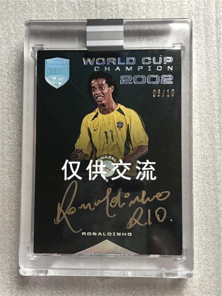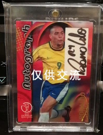 球星卡:大罗的亲签卡其实并不多,印象中应该主要是帕尼尼的贴纸简签(杜蕾斯、IMM、三重奏等),以及真金白银系列的金笔全签,可以说是凤毛菱角。另外,帕尼尼早期的的2002世界杯期间也出过大罗的嵌入式的签名卡,数量稀少,价值连城。