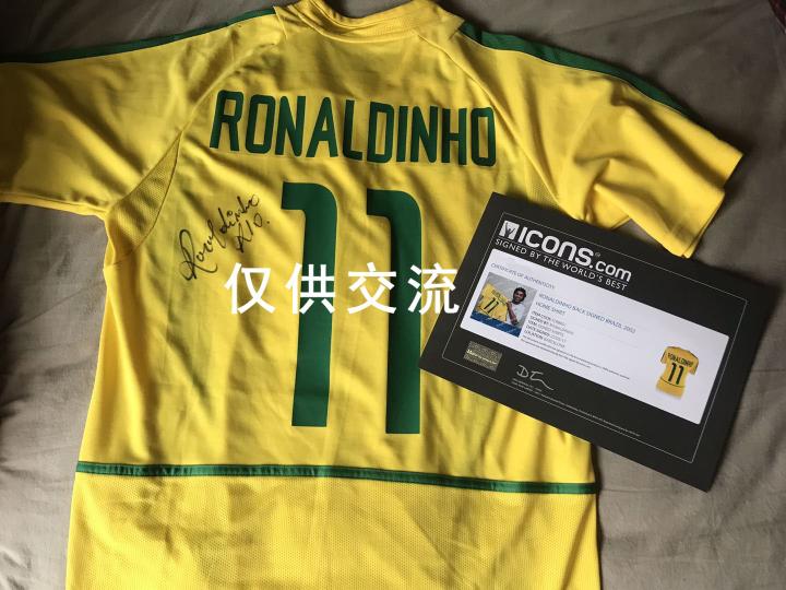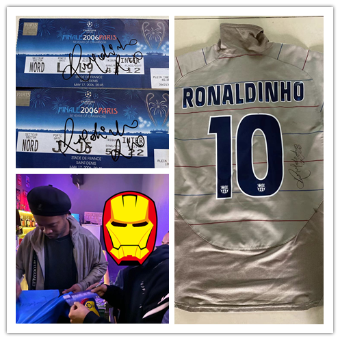 足球初恋代表人物之一。就像《天下足球》的广告文案里写的:“如果你不看足球,你不会知道为什么只有罗纳尔多被称为外星人”。说到大罗,很多藏友的第一反应可能是,大罗的签名市场上挺多的呀。是的,大罗确实跟很多公司都有合作,IP也不少。但是因为他的球迷群体实在是太大,市场上可见的藏品很快就被消化掉,很多人收藏起来之后也不愿意轻易出手,所以真正流通的并不多。