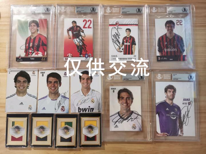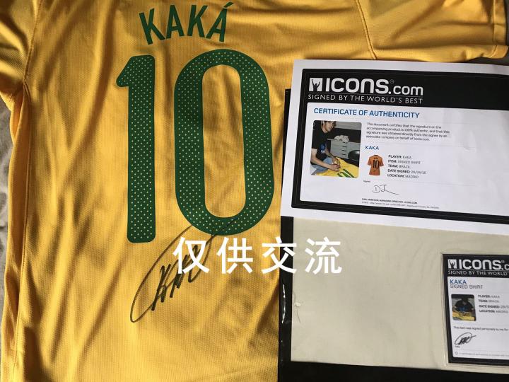 经纪公司:卡卡在2010年初到皇马不久时,曾经与ICONS合作签过2010年巴西国家队球衣、0910皇马球衣、阿迪pure球鞋,以及大海报等一批亲签藏品。当然官网几年前就已经断货了。此后也很少跟经纪公司合作(市面有见个别日本公司产品,不过数量很少,不具有代表性)。