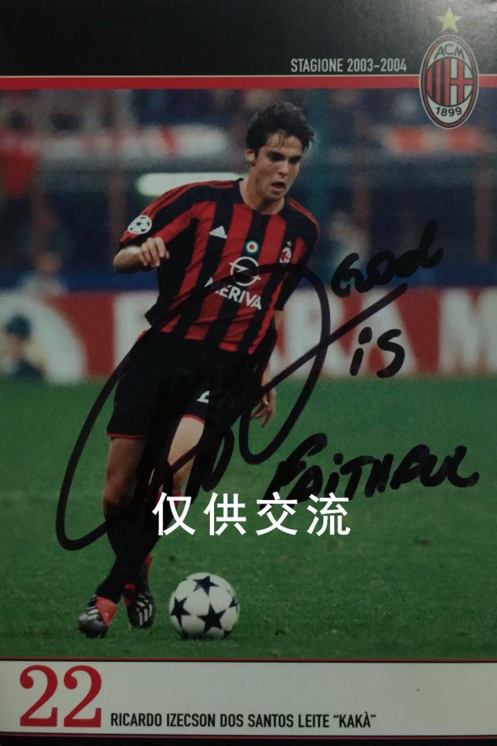 俱乐部回信:早在0304赛季,米兰曾经回过卡卡亲签的官方卡。除了签名以外,卡卡还会习惯性写上“God is Faithful”的铭文。当卡卡转会到了大联盟的奥兰多城队时,俱乐部也曾经回过亲签的官方卡(7寸)。