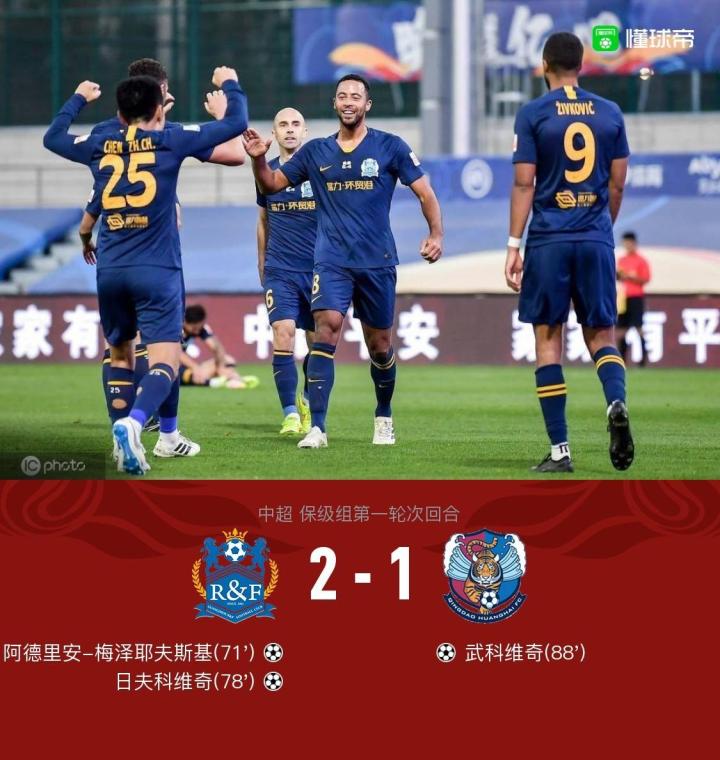 富力2-1青岛总比分2-1成功保级,阿德里安、日夫科维奇破门
