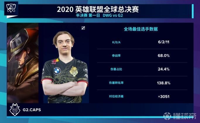电竞赛事战报北京时间10月24日18:00,2020英雄联盟全球总决赛半决赛G2 vs DWG,DWG 3-1战胜G2,晋级决赛。