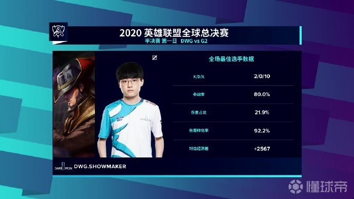 第3分钟,DWG.ShowMaker卡牌单杀G2塞拉斯拿到一血。