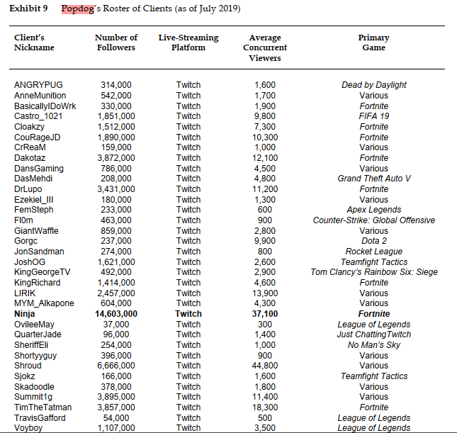 ▲在PopDog的众多电竞主播当中,Ninja是唯一一个千万级别主播