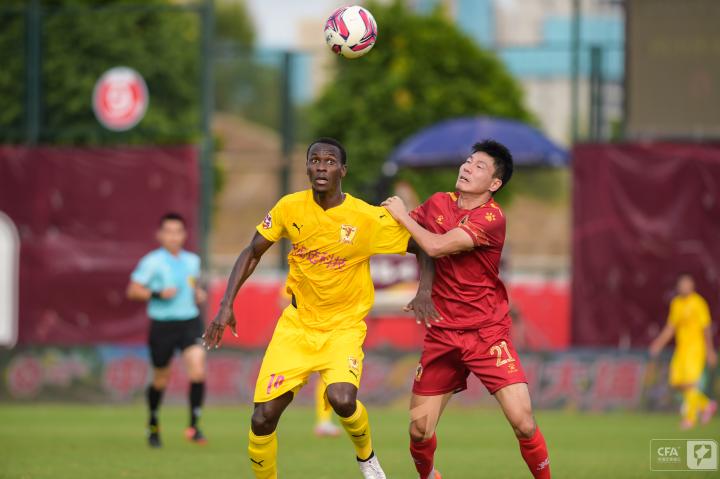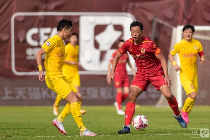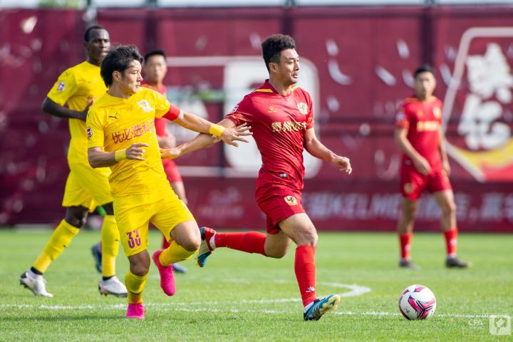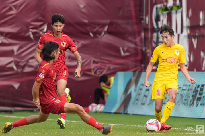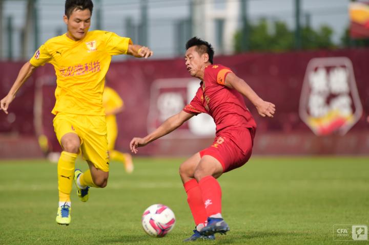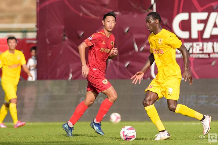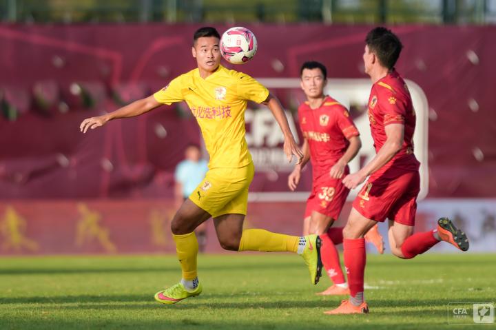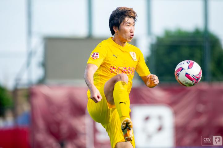 第19分钟,四川队发动反击,王楚分给右路插上的南小亨,后者带球推进再次转移给左边的郑圣雄,可惜最后的射门没能摆脱防守球员。