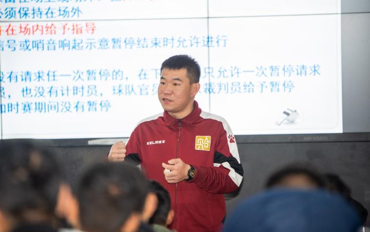 助理讲师刘思家正在为教师们讲解裁判规则