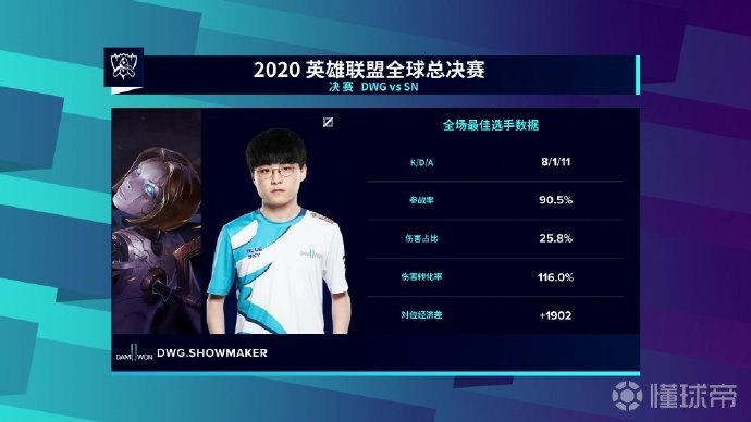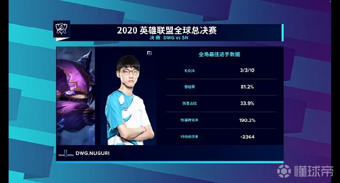 最后DWG拿下赛点,本局MVP给到牛宝的凯南。