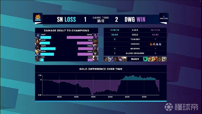第26分钟,DWG在中路依靠巨大的优势一气呵成击败SN,拿到冠军。