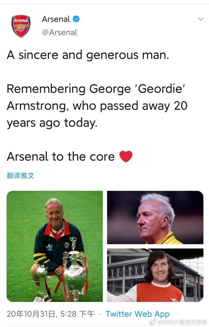 阿森纳历史上的今天:10月31号,缅怀传奇边锋阿姆斯特朗