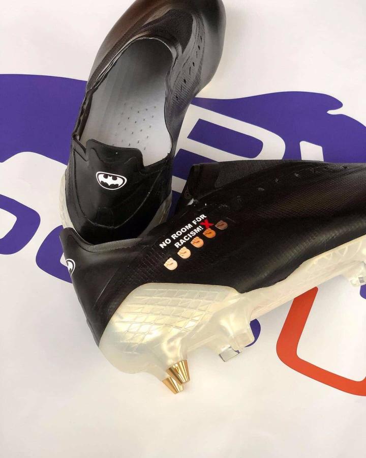 这是继切尔西小将里斯·詹姆斯后,又一位非洲裔球员通过定制球鞋来参与到“Black Lives Matter”运动中来。巴楚瓦伊上脚的这双定制款adidasd X GHOSTED.1足球鞋来自于英国知名经典老球鞋店铺BW Boots UK,并由来自英国的定制球鞋工作室Tootsboots负责打造。