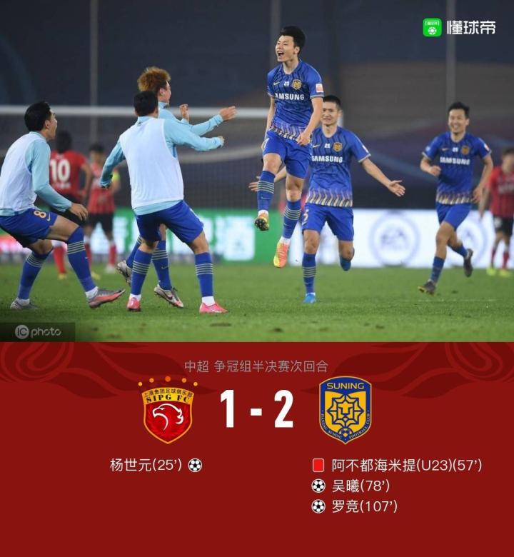 加时赛下半场,第107分钟,罗竞打进惊天世界波,上港1-2江苏,总比分变为2-3!
