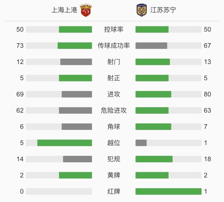 北京时间11月2日15:30,中超第二阶段争冠组半决赛次回合比赛,上海上港对阵江苏苏宁,本场比赛的主裁判是郭宝龙,首回合双方战成1-1。上半场,杨世元一脚世界波打破僵局,石柯头球经VAR回看因越位被吹,双方拼抢激烈,吕文君犯规动作经VAR介入,最终判罚一张黄牌;下半场,阿不都海米提对奥斯卡犯规,经VAR回看被直接红牌罚下,随后奥斯卡伤退,吴曦扳平比分,特谢拉错失绝杀良机,上港1-1江苏,总比分2-2平,双方进入加时。加时赛中,双方都接近体力透支,埃德尔也无法坚持被换下,加时赛下半场罗竞打进精彩世界波,十人江苏最终2-1逆转上港,总比分3-2战胜对手晋级争冠组决赛!