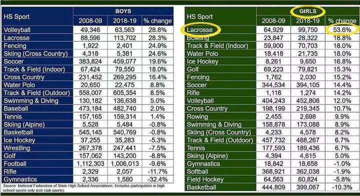 如今,棍网球在国际上的发展日新月异!美国作于棍网球的几大强国, 在2018-19赛季的高中运动普查中,棍网球是近10年女子发展最快的运动,男子棍网球也仅此与排球。