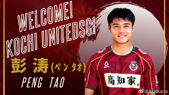 北京时间11月2日,日本第四级别联赛球队高知联官方宣布,19岁的中国后卫彭涛加盟球队。