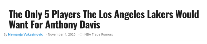 詹姆斯和浓眉合作的第一个赛季,湖人就夺得总冠军。不少球迷甚至认为浓眉是詹姆斯有史以来最强的搭档。北京时间11月4日,美媒Fadeaway World提出一个有趣的话题,现在这个联盟中,有哪些巨星可以单换浓眉?他们提出了五个人选,这些球星搭档詹姆斯的效果又会如何呢?