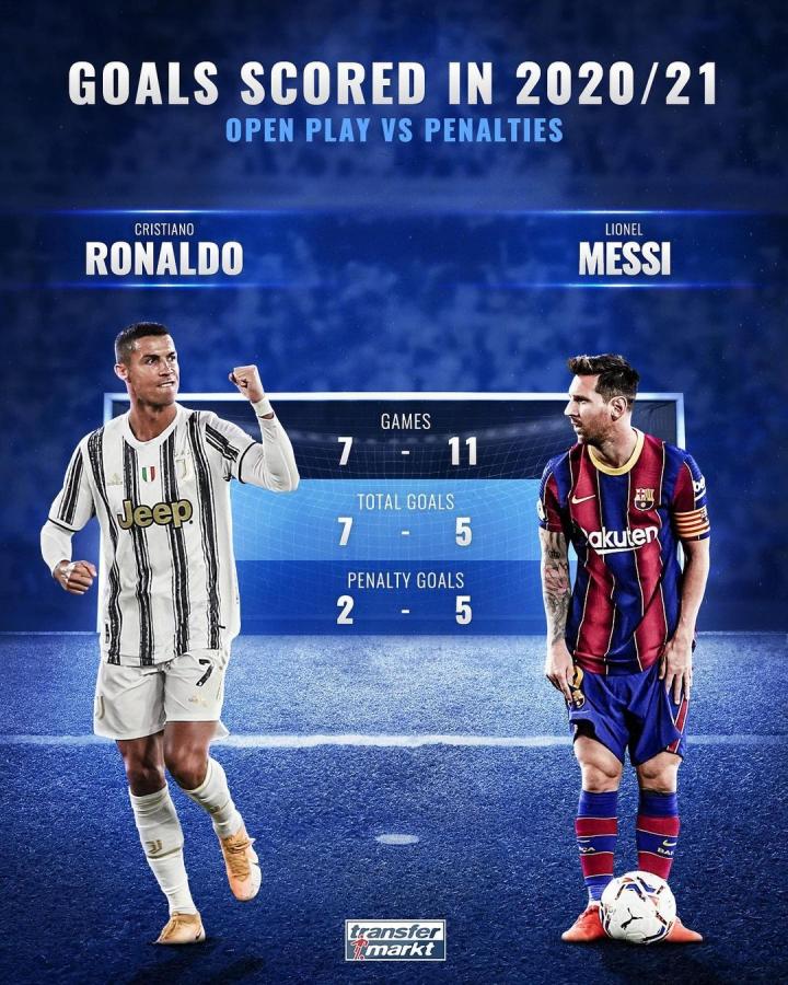 梅罗本赛季进球对比:C罗7球中有2粒点球,梅西5球全为点球大风车keith @懂球帝2020-11-06 10:54德国转会市场网站盘点了梅西和C罗本赛季以来的进球情况,C罗打进的7球中有2粒点球,而梅西5粒进球全部来自点球破门。本赛季,C罗由于感染新冠只踢了7场比赛,其中为尤文出场4次,斩获5球,此外C罗还为葡萄牙队出战了3场比赛,他在2-0力克瑞典的欧国联小组赛中梅开二度。梅西为巴萨出场9次,斩获4球4助,此外,他还为阿根廷队在世预赛中出场2场,并在对阵厄瓜多尔的比赛中通过点球打进制胜球。展开更多