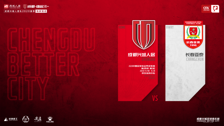 11月8日下午15:30,2020中甲联赛第二阶段最后一轮,成都兴城人居迎来将在双流体育中心迎战长春亚泰,这是两支球队首次过招。