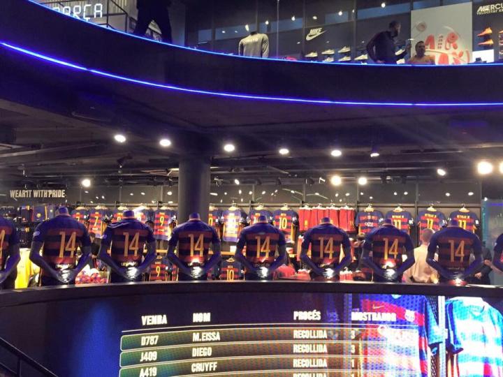 为了致敬已故的教父克鲁伊夫,巴萨各级机构都举办了纪念克鲁伊夫的活动,从拉玛西亚小球员的默哀仪式,到开放诺坎普球场悼念克鲁伊夫,巴萨的诺坎普官方商店也不例外,他们开始上架了14号克鲁伊夫纪念球衣。