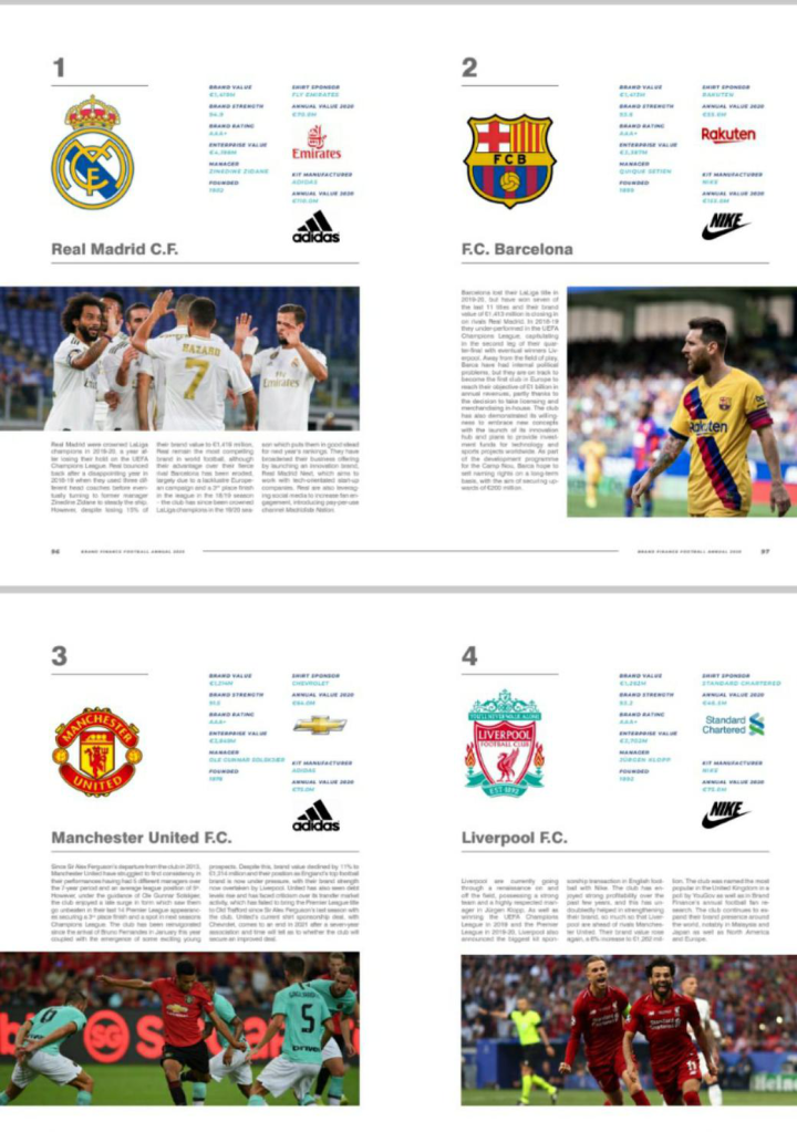 阿迪达斯、耐克和彪马这三个品牌几乎占据了世界足坛球衣赞助的80%的市场,在世界最具价值俱乐部前10名的球队中,球衣的品牌被阿迪达斯、耐克、彪马包揽了,在这十支球队中,与皇马、曼联、拜仁、阿森纳所合作的是阿迪达斯,与巴萨、利物浦、大巴黎、切尔西、热刺所合作的是耐克,而与彪马合作的只有曼城,从数量上来看,彪马的影响力较阿迪达斯和耐克还是有着不小的差距。
