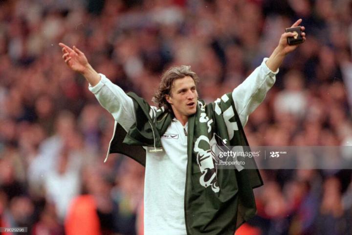 而大卫吉诺拉在新帅达格利什上任后,就因为过于自我的踢球风格成为了替补,这让法国人无法接受,虽然纽卡斯尔在那个赛季还是获得了英超亚军,但吉诺拉对这样的足球嗤之以鼻。1997年夏天,对达格利什保守足球风格十分不满的吉诺拉转会加盟托特纳姆热刺。尽管只在纽卡斯尔效力了两年,吉诺拉却在2017年纽卡斯尔联125周年队庆时,成为了球队历史长河中被人铭记的一员。而他在纽卡最经典的镜头无疑是在1996年联赛杯对阵费伦科瓦洛斯时那脚左脚凌空抽射。