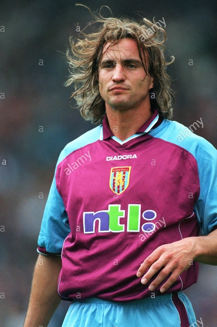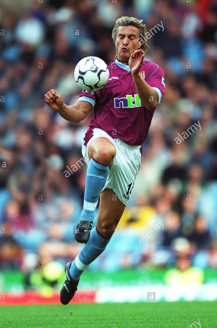 他的下一站是英超阿斯顿维拉,在维拉,吉诺拉的球鞋也换了赞助,他使用的是adidas没有摩擦条的猎鹰5代novamundial,如果让当时是24岁,可能他和小贝一样成为adidas的天皇巨星,但此时吉诺拉的状态尚可,当时维拉主帅格里高利说吉诺拉身体已经发福,不堪大用。于是在2000年12月,吉诺拉和曼城的比赛中取得进球后,他向格里高利展示了自己的肌肉,大家给评评理,到底发福没有。最终那个赛季,吉诺拉为维拉打入3球,维拉获得联赛第八。