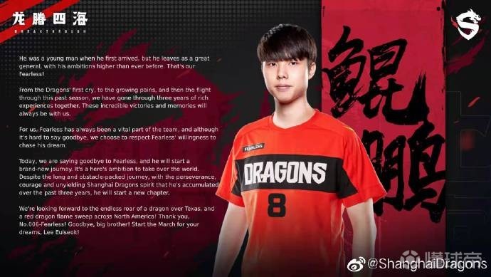 【fearless离开上海龙,官博接受粉丝答疑】ShanghaiDragons官博:初来乍到仍是少年,再度归来已有大将之风,未来更有登天之志!这就是我们的Fearless!
