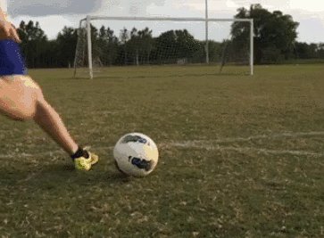 要點--轻松跑向足球,射球前平衡身体,膝向足球顺势提腿,当立足脚站在足球侧的时候,轻扭身体膝转向外,锁紧脚眼撞击足球中央将球射出。