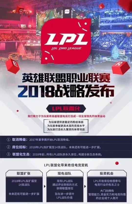 2018年初,LPL做出了足以载入电竞史的改革——官方取消了原先的升降级制度,取而代之的则是类NBA式的特许经营权模式,并开启席位招标。