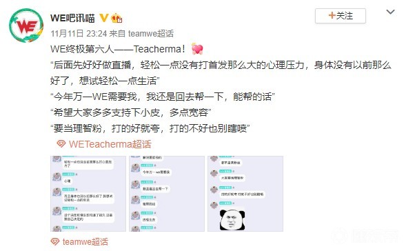 WE中单TeacherMa:后面先做直播,需要我我还会回去帮忙
