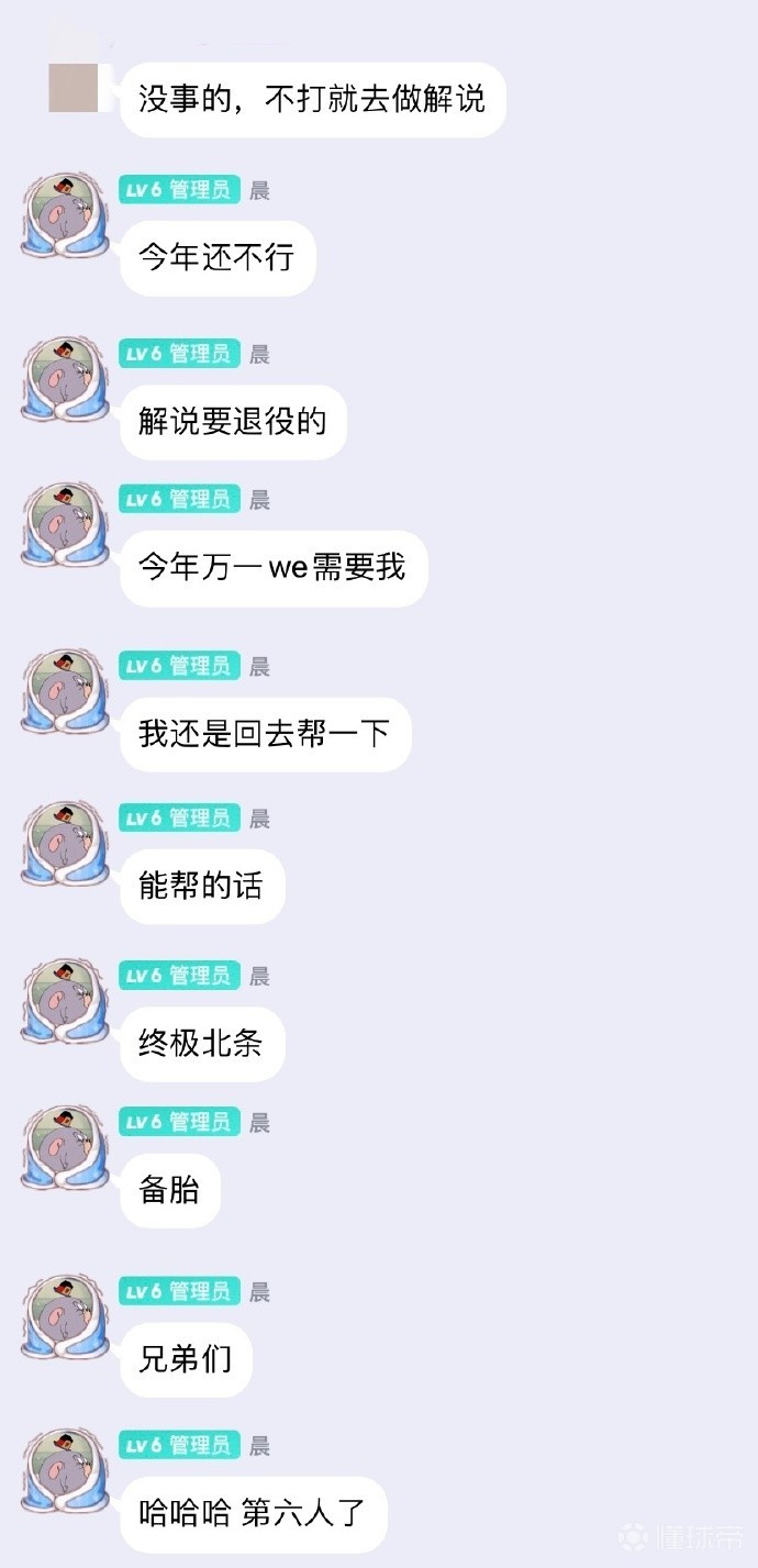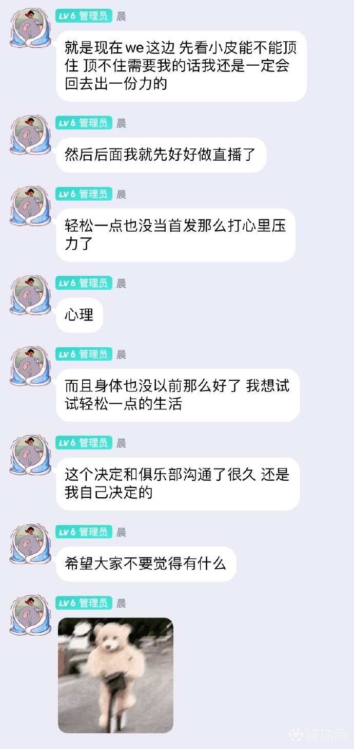 【WE中单TeacherMa:后面先做直播,需要我我还会回去帮忙】昨晚,WE吧讯喵 放出了WE中单选手TeacherMa在QQ群的聊天记录:“后面先好好做直播,轻松一点没有打首发那么大的心理压力,身体没有以前那么好了,想试轻松一点生活”,“今年万一WE需要我,我还是回去帮一下,能帮的话”,“希望大家多多支持下小皮,多点宽容”,“要当理智粉,打的好就夸,打的不好也别瞎喷”。