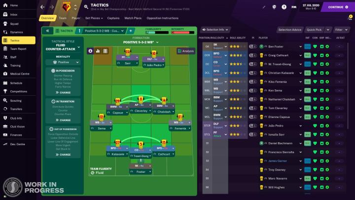 来到维卡拉格路体育场(Vicarage Road)后,你的首要任务就是立刻升级到顶级联赛,但是值得庆幸的是 - 在战术板上,沃特福德有联赛历史中最令人兴奋的阵容之一。你的阵容有经验老手本-福斯特(Ben Foster)、汤姆·克莱维利(Tom Cleverley)和埃蒂恩·卡普埃 (Etienne Capoue),以及年轻新秀若昂·佩德罗(Joao Pedro)、多明戈斯·基纳(Domingos Quina)以及夏季收购杰里米·恩加基亚(Jeremy Ngakia)。啊,忘了说还有俱乐部最贵收购的伊斯梅拉-萨尔(Ismaila Sarr)。是时候展现您真正的实力了。