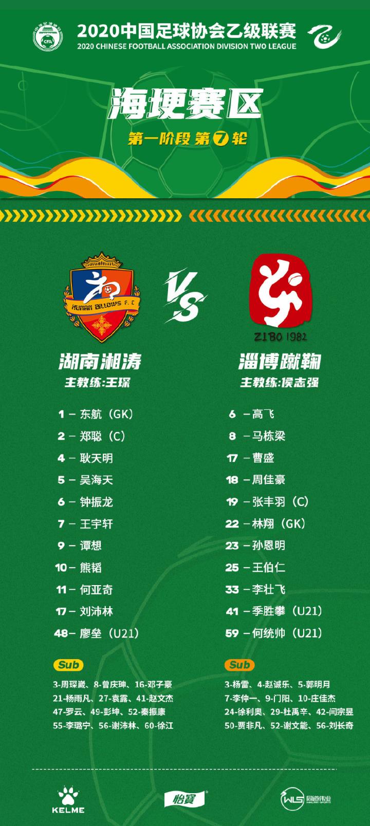 今天下午,2020赛季中乙联赛第一阶段第七轮比赛全面开战。在昆明海埂训练基地,淄博蹴鞠与湖南湘涛展开较量。本场比赛凭借王伯仁定位球直接得分,最终,淄博蹴鞠1-0战胜湖南湘涛。