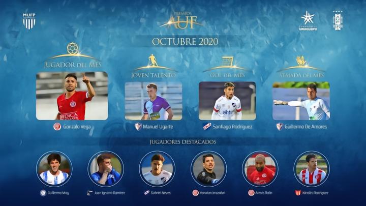 11月14日,乌拉圭足协公布了10月乌拉圭甲级联赛各项最佳,包括最佳球员、最佳年轻球员、最佳进球、最佳扑救,以及6位杰出球员。