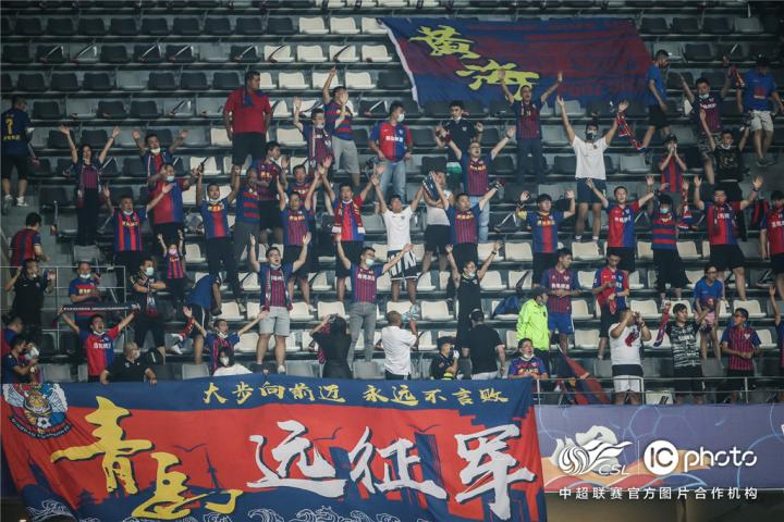 11、2020年9月5日,江苏苏州。2020中超联赛第9轮,青岛黄海青港 VS 石家庄永昌。根据疫情的实际情况,在组委会与赛区的统一安排部署下,青岛黄海青港队的球迷们第一次走进中超赛场为球队加油助威。