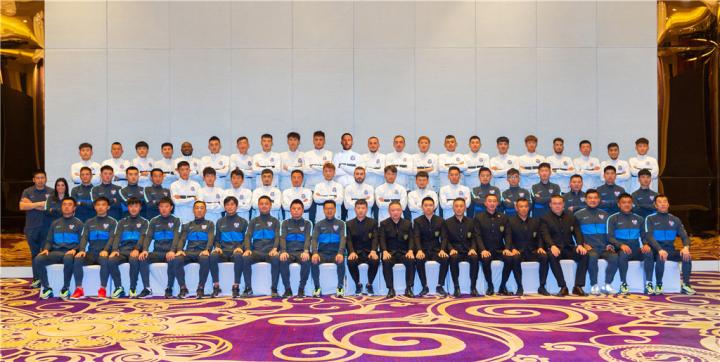 图:当天,青岛黄海青港队拍摄了本赛季人员最为齐整的一张全家福。