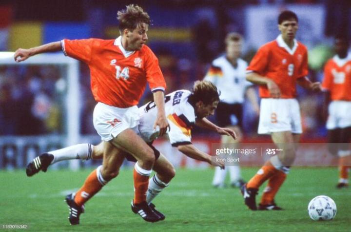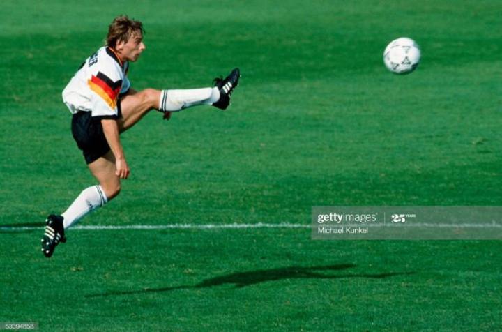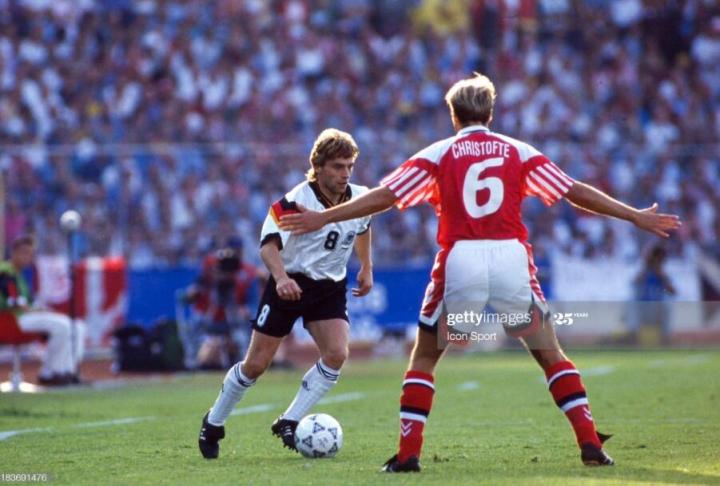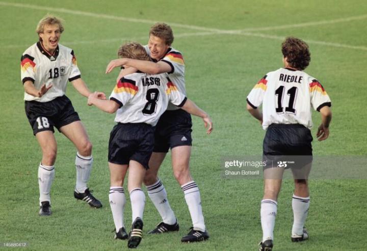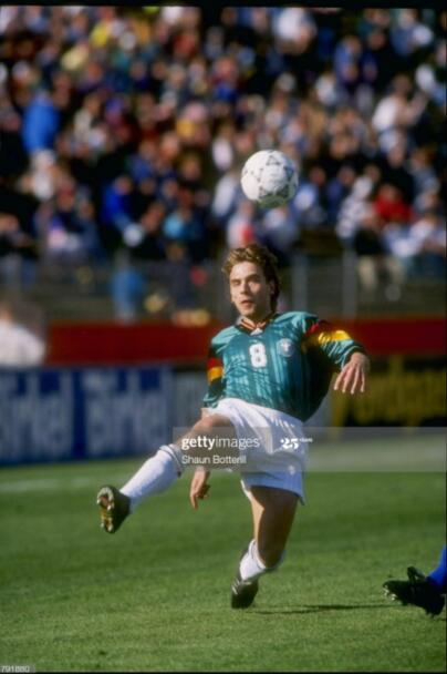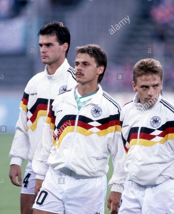 在罗马队出色的表现,也让哈斯勒顺利入选了1992年欧锦赛的西德队,当时两德刚刚合并,德国足球人才济济,虽然马特乌斯因伤无缘欧锦赛,但是东德鬼才萨默尔很好的填补了马特乌斯的位置,哈斯勒则成为了德国队名副其实的中超核心。那届比赛哈斯勒使用的球鞋又是92年欧锦赛adidas的纪念款eqt。