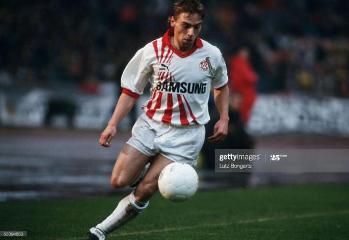 成为西德国脚后,哈斯勒更加自信,他在德甲的表现几乎逆天,各种任意球破门,精妙助攻传球,那个赛季,科隆队仅次于拜仁获得德甲亚军,科隆前锋的阿洛夫斯在哈斯勒的支持下,获得了德甲最佳射手称号,在1989年西德足球先生的评选中,23岁的哈斯勒当选。在89-90赛季,哈斯勒帮助科隆再次获得德甲亚军,当时他也被公认为西德脚法最好的球员,这一点,连埃芬博格这样的狂人都认可。