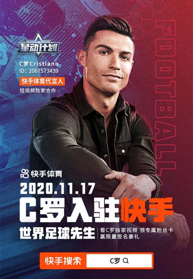 11月17日,足坛巨星克里斯蒂亚诺·罗纳尔多(C罗)将正式入驻快手。