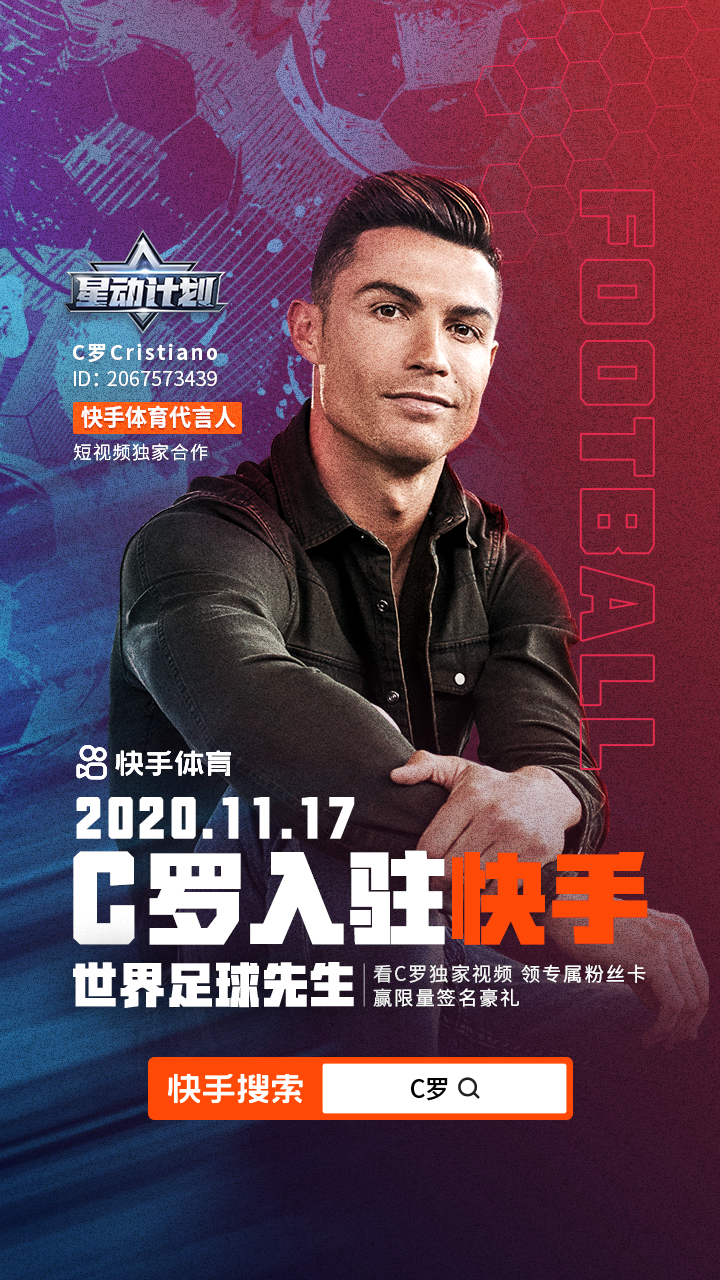 世界足球先生C罗正式入驻,快手体育内容生态日益丰富