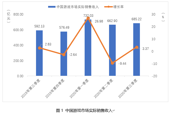 根据《2020年第三季度中国游戏产业报告》显示,中国游戏市场实际销售收入685.22亿元。而2019年全国的电影总票房,也不过642亿元。