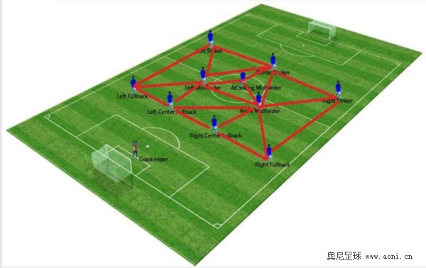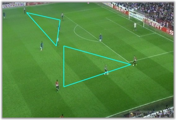 4-3-3阵型就是一个典型的,运用了三角形策略的战术体系——在这套战术体系中,球员们时常保持着三角站位。