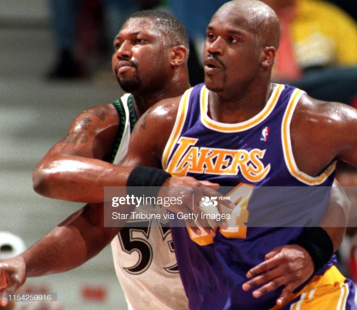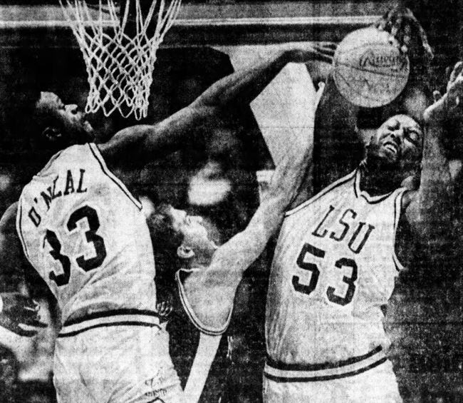 这张照片,是当时还很年轻的奥尼尔仍效力于路易斯安那州大(LSU)时的照片,但照片中奥尼尔身边身穿53号(他生涯后来一直是穿这个号码)球衣的大块头,却也吸引了球迷注意,他的名字叫斯坦利-罗伯茨(Stanley Roberts)。