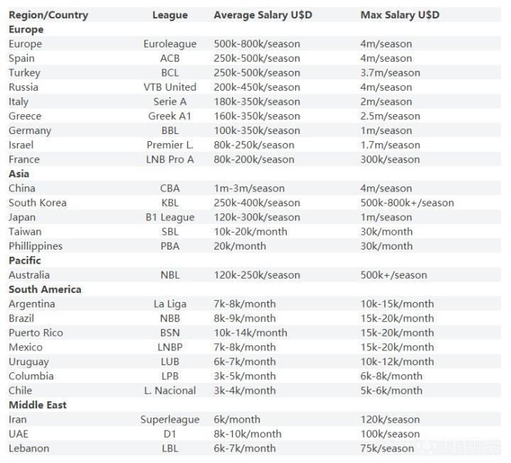 各国篮球联赛外援薪资水平:CBA世界第一,欧洲篮球联赛第二
