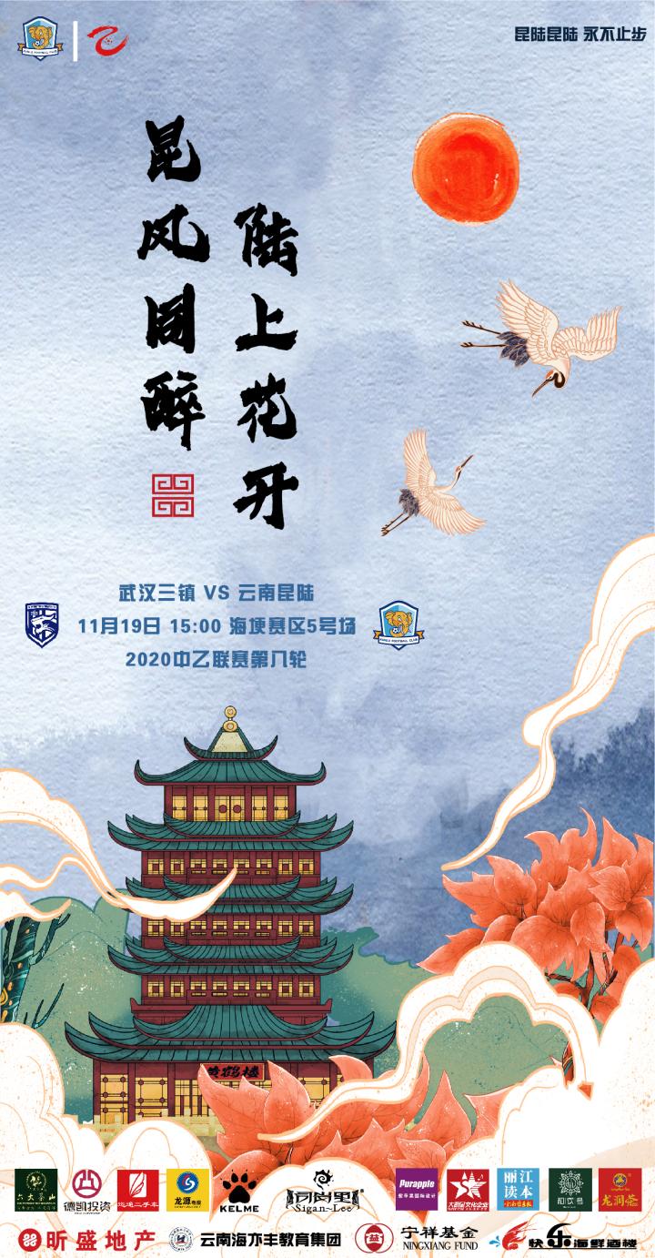 11月19日(周四)15点,2020中乙联赛第八轮比赛继续进行。云南昆陆将在海埂赛区迎战小组领头羊武汉三镇队。