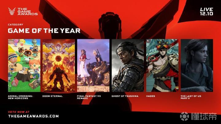 《集合啦!动物森友会》、《毁灭战士 永恒》、《最终幻想 7 重制版》、《黑帝斯》、《对马岛之魂》和《最后生还者 第二部》。
