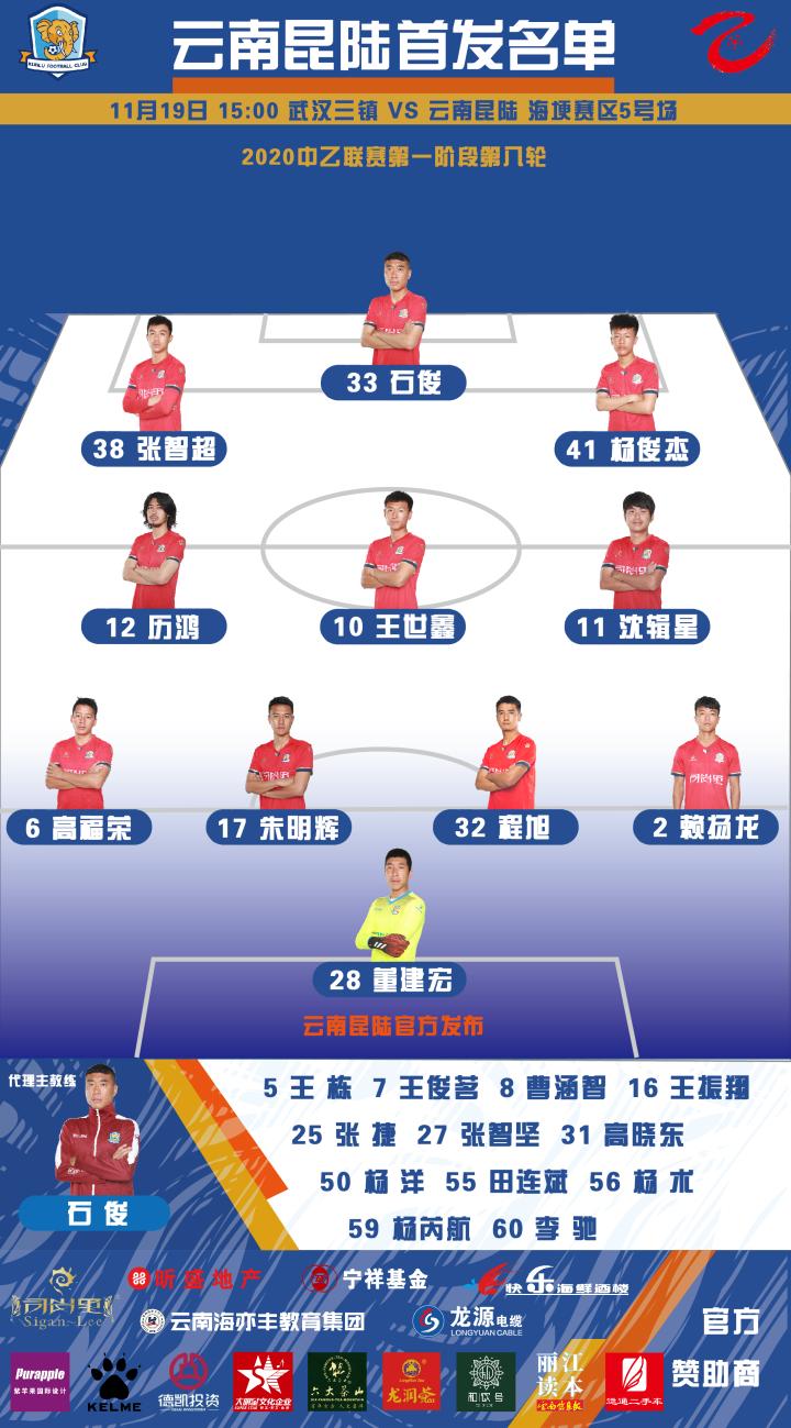 昆陆今天身穿红色比赛服出战。王通累计黄牌停赛,历鸿担任今天的场上队长。考虑到对手武汉三镇进攻实力强劲,昆陆今天的打法以稳守反击为主。