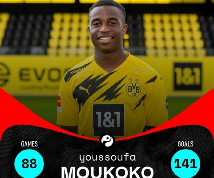 2017-18赛季,穆科科代表多特在U17青年联赛攻入37球;2018-19赛季更是完成了46粒进球——年仅14岁,穆科科就打破了德国U17青年联赛进球纪录。