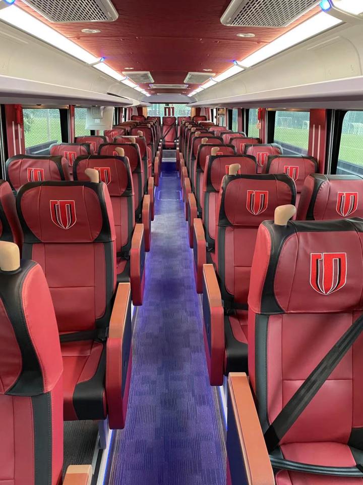 球队大巴加装了滑轨式高铁窗帘,能够提供更有效的遮挡并在必要时更好地保护球队隐私。为使大巴车座位更加宽敞舒适,球队大巴车由原来的56座改为了48座,座椅用料环保且符合人体结构,乘坐舒适、能帮助球员减轻疲劳感。座椅下方还加装了暖气口,能够在寒冷的天气里给球员们带来更加温暖的乘坐体验。