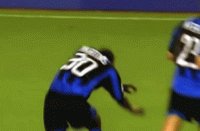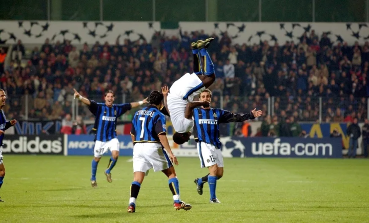 其中最令人印象深刻的就是,2002/03赛季国际米兰在欧冠客场2-0击败勒沃库森的比赛。在这场比赛,马丁斯攻入个人蓝黑军团的首球,并在进球后兴奋地连续做了5个后空翻。从这以后它就成了这位尼日利亚前锋的招牌庆祝动作,而这一经典动作也被欧足联编进冠军杯片头。